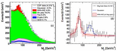 然而,Tevatron實驗的光環並不會因此消失,依舊充滿著驚喜。在2011年4月時,他們發布了最新的驚喜。CDF團隊在120 -160 GeV質量不變窗口中的dijet系統,在2 jets的W玻色子相關產物中發現過剩 [1]。