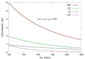 這表明可能是超出粒子物理學標準模型的新物理。如果這是一個真正的發現,它將會是近幾十年來最偉大的發現。台灣新竹市國立清華大學的張敬民和韓國首爾建國大學的Jeonghyeon Song [2] 最近提供了一個簡潔、關鍵且很有趣的解釋。他們建議一個自然界新的力,透過一個 在 15年前提出的重子介導Z’玻色子 ,可以解釋這種過剩。這種重子Z' 玻色子是非常不同於一般Z玻色子,因為它只和 帶重子數的夸克耦合。令人驚訝的是,用這種特殊屬性,重子Z' 玻色子可以克服一切其他 加給 Z' 玻色子 的限制, 及 準確地解釋這種過剩。張敬民和Jeonghyeon Song [2]發表在2011年5月發行的物理評論快報,迅速引起世界各地粒子物理學家的注意。該文章在發表後第一個月內已被引用超過 30次。 進一步測試 Z' 玻色子包括尋找相關的類似渠道,如光子+ 2 jets 和Z + 2 jets。預期的截面如圖3所示。其他截面只有小2-3 倍,因而當更多的數據積累,他們也可以觀察到。在Tevatron實驗的前景看起來很有希望。這種重子Z’可能來自一些特定版本的大統一理論(GUT)或一些全新類型的模型。如果這些觀察現象屬實且經由更多的數據確認重子Z',這將可能導致最後的粒子物理學理論。