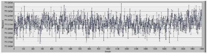 to 0.1 second and measure 2000 points. The mean frequency is 773.213